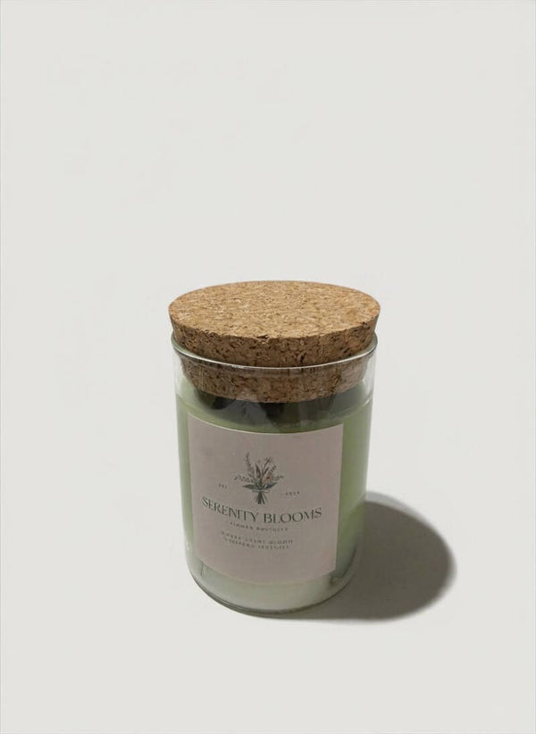 Bring warmth, relaxation, and elegance into any space with our handcrafted Serenity Blooms candles. Each candle is poured into a reusable glass vessel with a natural cork lid and designed to complement our floral arrangements, plants, and luxury gift sets.